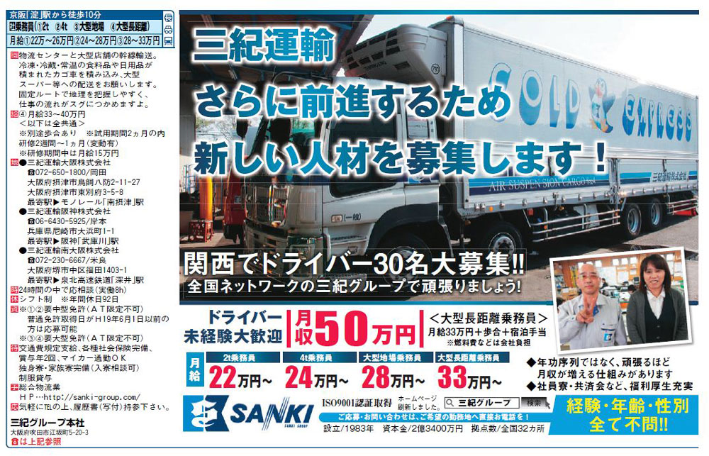 三紀グループでは、9/14(月)より、求人情報誌「タウンワーク」に求人情報を掲載いたします。